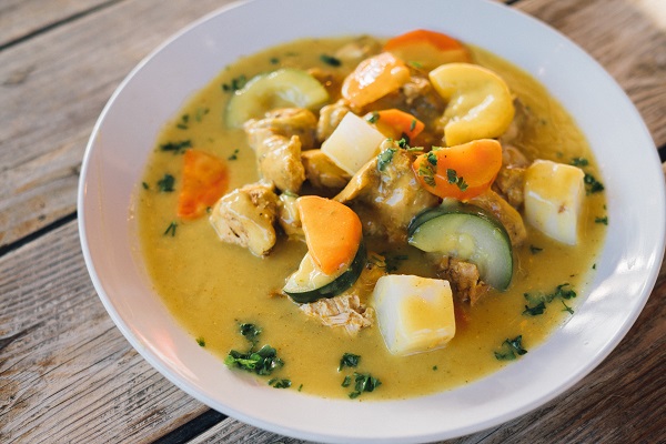Succulent chicken breast cubes, carrots, and marrow cooked in mild, aromatic sauce.